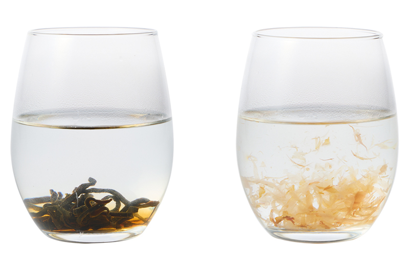 今回新たに考案された「まろや燗」のやり方は、器に「アミノ酸」「塩分」「有機酸」の素材、具体的には梅干しや塩昆布、かつお節、とろろ昆布などを入れて、通常の燗酒よりも高い約60~70℃に温めた低アルコールの清酒を注ぐ、それだけ。